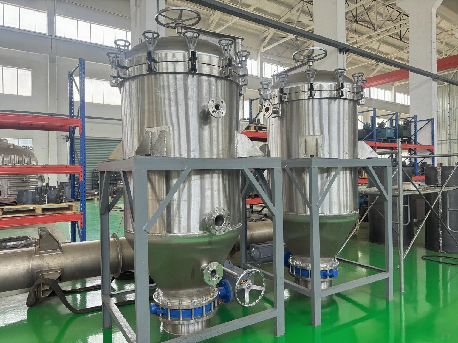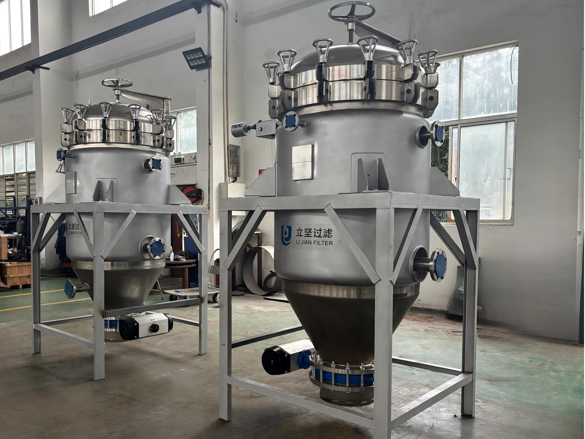 过滤机主体是由壳体、过滤板、起盖结构、自动排渣装置等组成其中过滤板是由多层不锈钢滤材组成,安装在中心集液管上,拆装清理十分方便。过滤时,含助滤剂的待滤液通过输送系统进入滤机,使过滤网上形成稳定的滤饼(滤饼层可提供无数的细微通道》后,待滤液即经滤饼层微孔进行实际过滤。