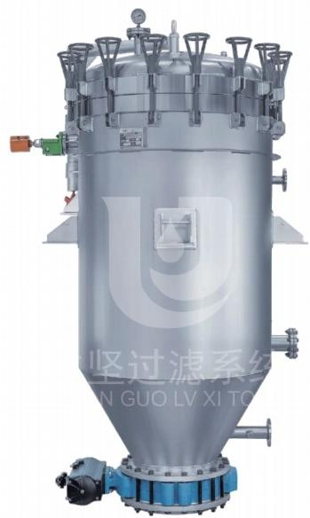 过滤机主体是由壳体、过滤板、起盖结构、自动排渣装置等组成其中过滤板是由多层不锈钢滤材组成,安装在中心集液管上,拆装清理十分方便。过滤时,含助滤剂的待滤液通过输送系统进入滤机,使过滤网上形成稳定的滤饼(滤饼层可提供无数的细微通道》后,待滤液即经滤饼层微孔进行实际过滤。