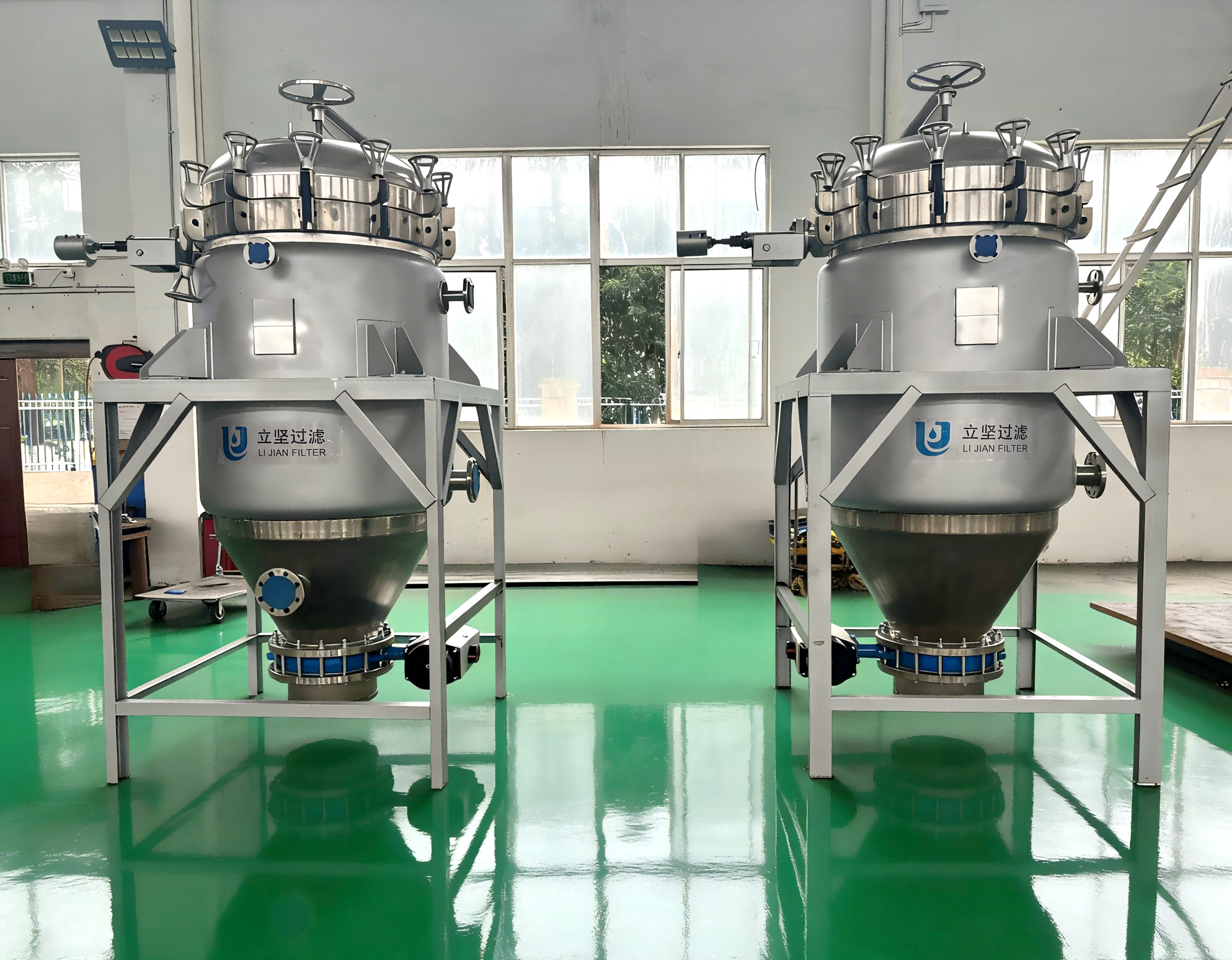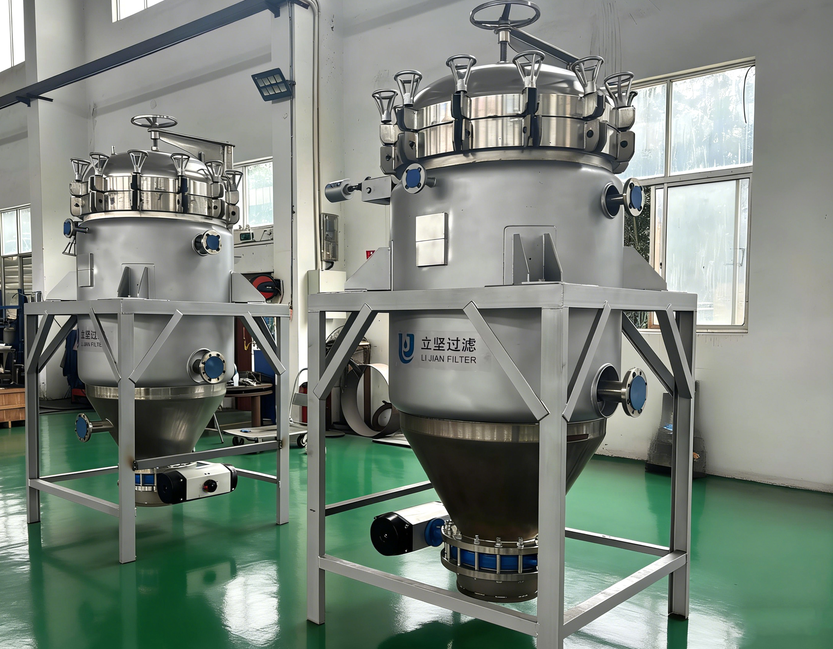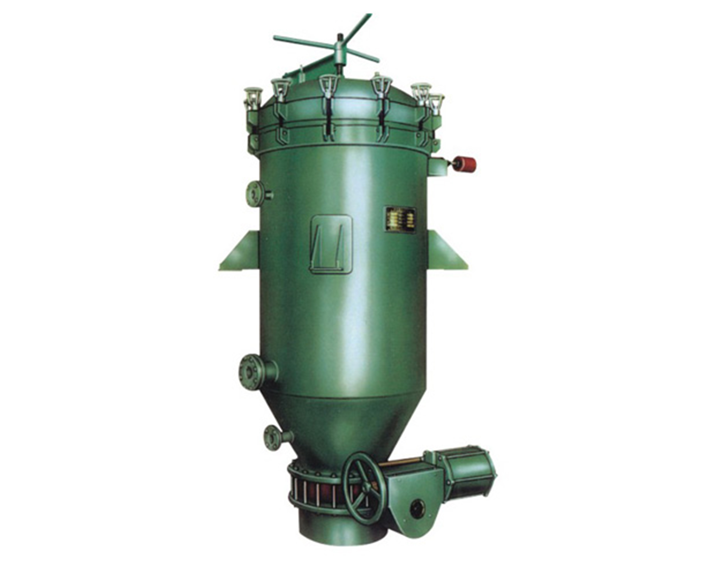 过滤机主体是由壳体、过滤板、起盖结构、自动排渣装置等组成其中过滤板是由多层不锈钢滤材组成,安装在中心集液管上,拆装清理十分方便。过滤时,含助滤剂的待滤液通过输送系统进入滤机,使过滤网上形成稳定的滤饼(滤饼层可提供无数的细微通道》后,待滤液即经滤饼层微孔进行实际过滤。