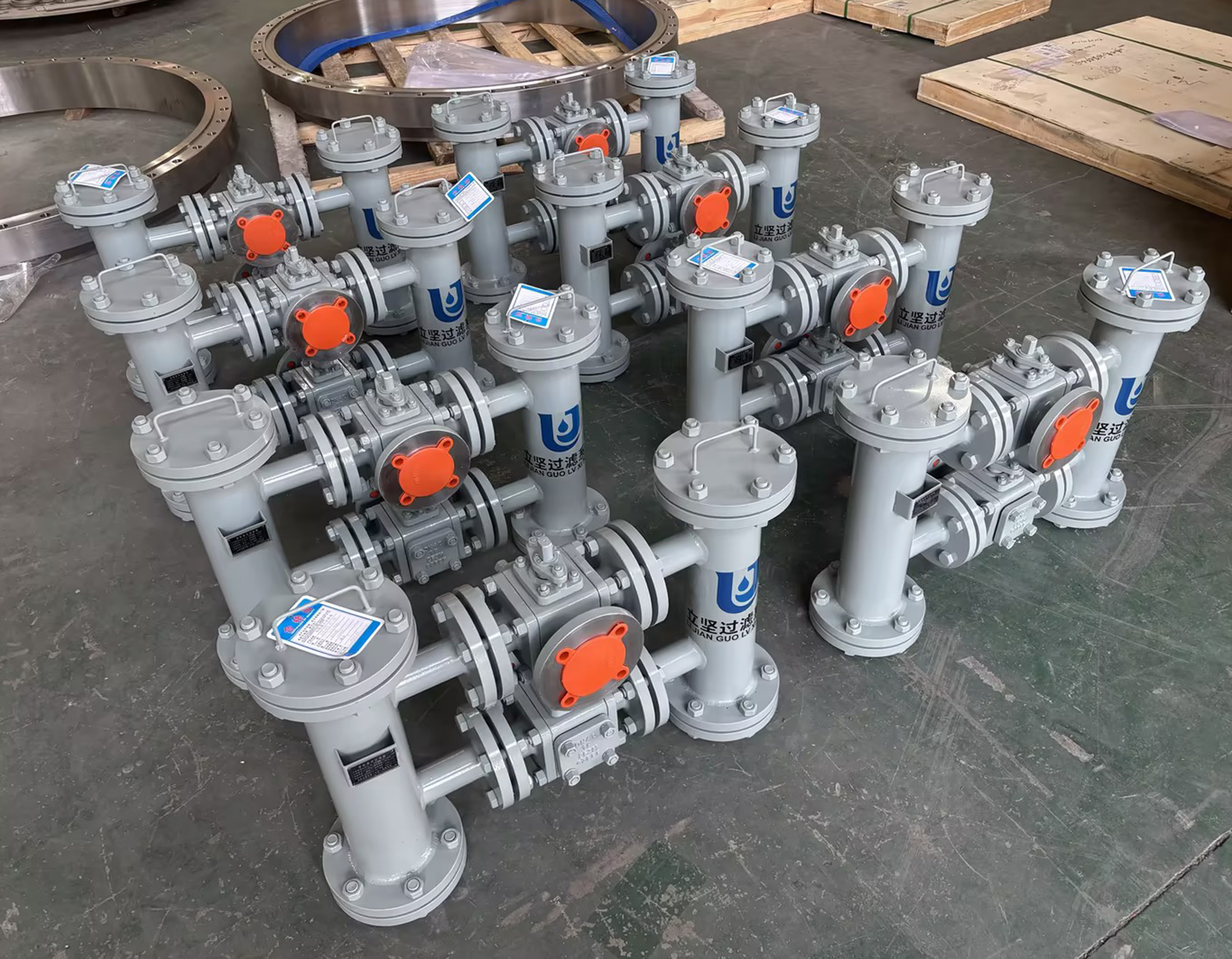 LG-GD-SL双联篮式过滤器也称并联式过滤器。它是由两台不锈钢过滤器并联而成,具有结构新颖合理、密封性好、流通能力强、操作简便等诸多优点,应用范围广泛、适应性强的多用途过滤设备。尤其是滤袋、滤芯侧漏机率小,能准确地保证过滤精度,并能快捷地更换滤袋、滤芯,过滤基本无物料消耗,使得操作成本降低。